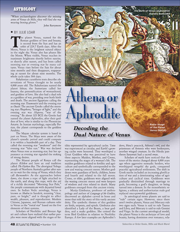 Posted on March 4, 2020October 2, 2020 by AReditorialDept Athena or Aphrodite The planet Venus, named for the Roman goddess of love and beauty, is second from the Sun and has an… You must be logged in to view this content. Post navigationPrevious post: Florida’s Mysterious Mayan OutpostsNext post: Undiscovered Country