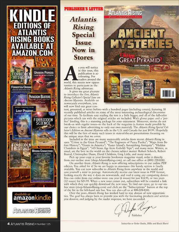 Posted on March 4, 2020September 29, 2020 by AReditorialDept Atlantis Rising Special Issue Now in Stores As you will notice in this issue, this publication is accelerating. For readers around the world, this means new opportunities… You must be logged in to view this content. Post navigationPrevious post: Inside the Sacred Caves of IndiaNext post: Science Fact & Fiction