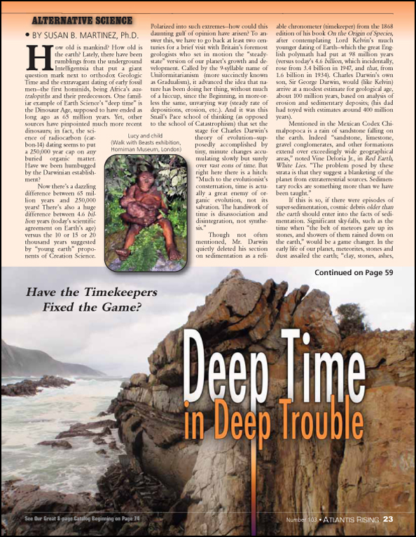 Posted on March 4, 2020March 31, 2020 by AReditorialDept Deep Time in Deep Trouble How old is mankind? How old is the earth? Lately, there have been rumblings from the underground Intelligentsia that put… You must be logged in to view this content. Post navigationPrevious post: Ancient Australians and Cosmic ImpactsNext post: Kennewick Man—The Japanese Connection
