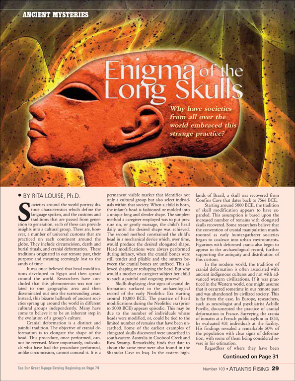 Posted on March 4, 2020October 6, 2020 by AReditorialDept Enigma of the Long Skulls Societies around the world portray distinct characteristics that define the language spoken, and the customs and traditions that are passed… You must be logged in to view this content. Post navigationPrevious post: Kennewick Man—The Japanese ConnectionNext post: The Engineers of Puma Punku