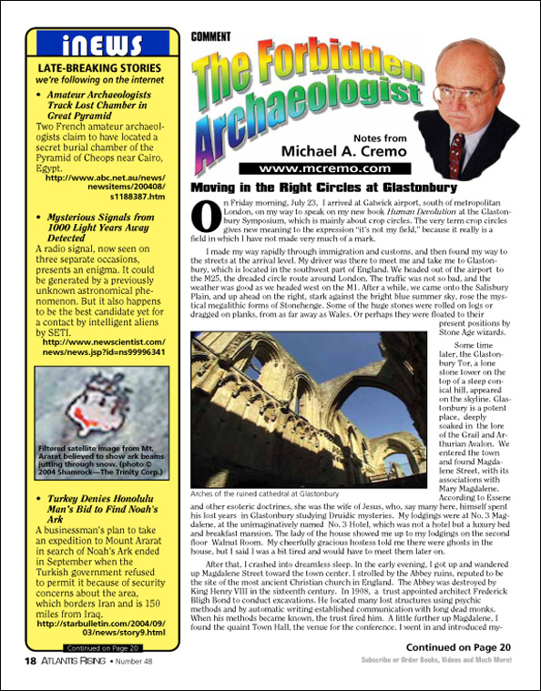 Posted on March 4, 2020September 29, 2020 by AReditorialDept Moving in the Right Circles at Glastonbury On Friday morning, July 23, 2004, I arrived at Gatwick airport, south of metropolitan London, on my way to speak… You must be logged in to view this content. Post navigationPrevious post: High Stakes on the Bleeding EdgeNext post: Enigma of the Crook & Flail