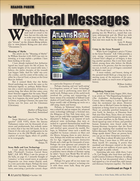 Posted on March 4, 2020March 31, 2020 by AReditorialDept Mythical Messages Writing to Atlantis Rising via snail mail or e-mail is the best, but not the only, way to make your… You must be logged in to view this content. Post navigationPrevious post: The Perils of “Incorrect” PersuasionNext post: Strange Thruster Defies Known Laws of Physics