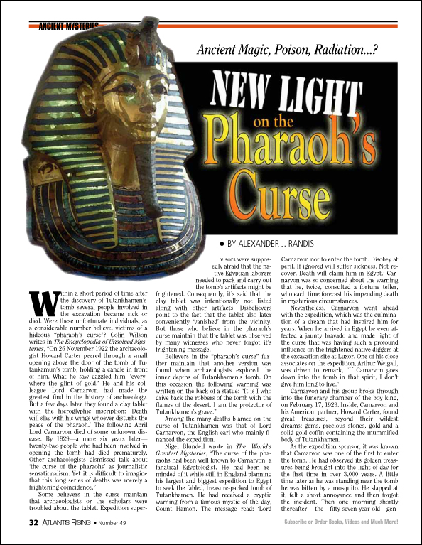 Posted on March 4, 2020July 24, 2020 by AReditorialDept New Light on the Pharaoh’s Curse Within a short period of time after the discovery of Tutankhamen’s tomb several people involved in the excavation became sick… You must be logged in to view this content. Post navigationPrevious post: The Case of the French AstronomerNext post: Incident at North Berwick