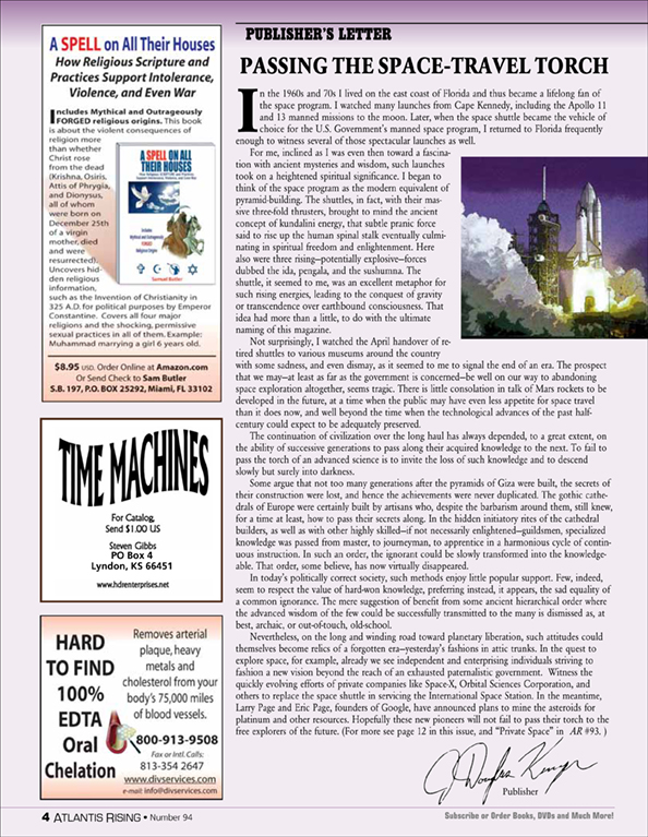 Posted on March 4, 2020October 2, 2020 by AReditorialDept Passing the Space-Travel Torch Passing the Space-Travel Torch By J. Douglas Kenyon, Publisher In the 1960s and 70s, I lived on the east coast… You must be logged in to view this content. Post navigationPrevious post: The Cranial Deformation MysteryNext post: Defining History