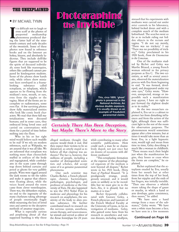 Posted on March 4, 2020September 29, 2020 by AReditorialDept Photographing the Invisible It is difficult not to laugh or even scoff at the photos of purported mediumship phenomena produced during the latter… You must be logged in to view this content. Post navigationPrevious post: Lost Realms: Following the Mythic TrailNext post: Beyond the Brain