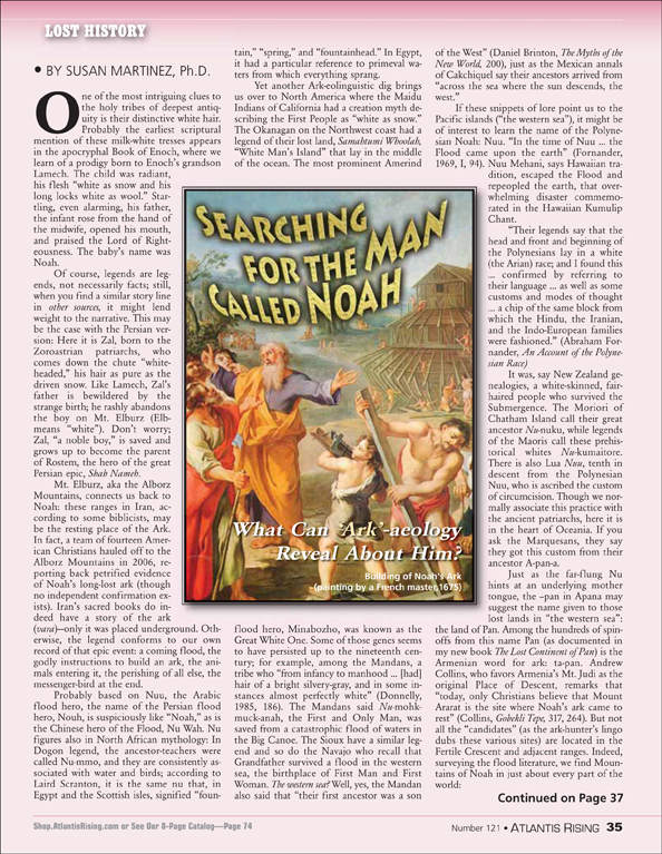 Posted on March 4, 2020October 2, 2020 by AReditorialDept Searching for the Man Called Noah One of the most intriguing clues to the holy tribes of deepest antiquity is their distinctive white hair. Probably the… You must be logged in to view this content. Post navigationPrevious post: An Engineer Visits Noah’s ArkNext post: The Very Odd Case of the “Michigan Relics”