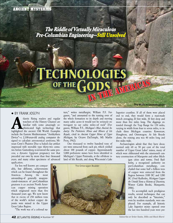Posted on March 4, 2020October 2, 2020 by AReditorialDept Technologies of the Gods—In the Americas Atlantis Rising readers and regular watchers of the History Channel are familiar with some amazingly sophisticated high technology that highlighted… You must be logged in to view this content. Post navigationPrevious post: Veil of MysteryNext post: Was Jesus an Actual King?