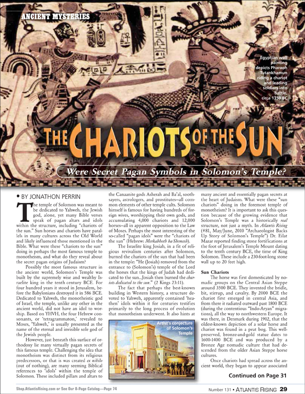 Posted on March 4, 2020September 29, 2020 by AReditorialDept The Chariots of the Sun The temple of Solomon was meant to be dedicated to Yahweh, the Jewish god, alone, yet many Bible verses speak… You must be logged in to view this content. Post navigationPrevious post: The Brownsville Skull: Case Not ClosedNext post: Where Are the Lost Machines?