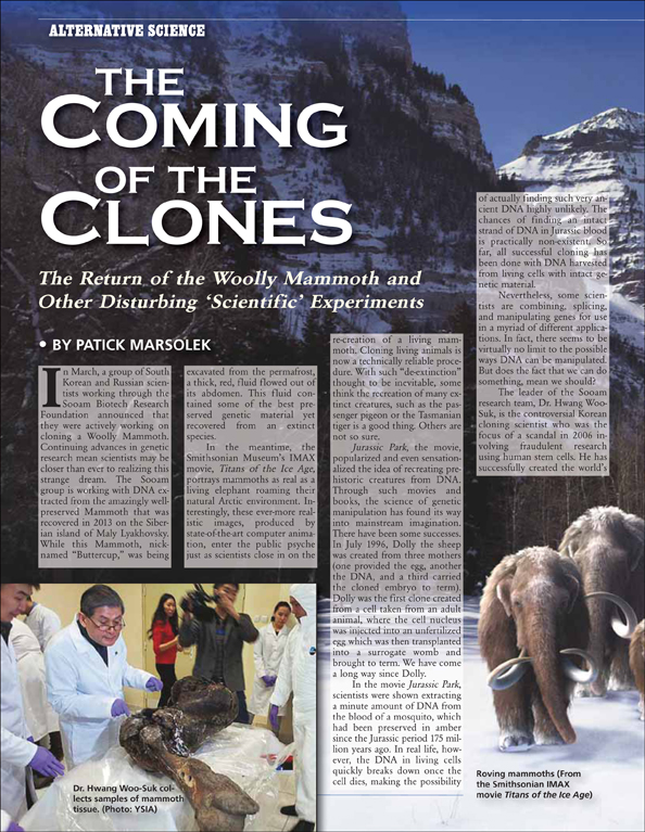 Posted on March 4, 2020October 2, 2020 by AReditorialDept The Coming of the Clones In March, a group of South Korean and Russian scientists working through the Sooam Biotech Research Foundation announced that they… You must be logged in to view this content. Post navigationPrevious post: Easter Island Dogma Gets a RewriteNext post: Knights Templar and the Much-Traveled Head of John the Baptist