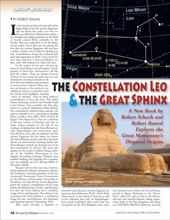 Posted on March 4, 2020March 30, 2020 by AReditorialDept The Constellation Leo & the Great Sphinx It has long been believed (and still is!) by Egyptologists that the ancient Egyptians did not know the zodiac and… You must be logged in to view this content. Post navigationPrevious post: What Does Water Remember?Next post: Nine Unknown Men