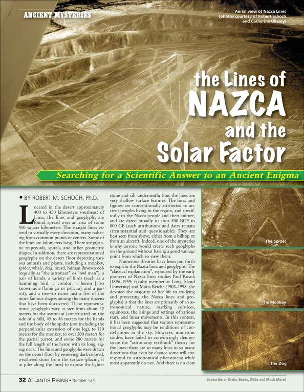 Posted on March 4, 2020September 29, 2020 by AReditorialDept The Lines of Nazca and the Solar Factor Located in the desert approximately 400 to 450 kilometers southeast of Lima, the lines and geoglyphs are found spread over… You must be logged in to view this content. Post navigationPrevious post: Lost River of the VedasNext post: Alternative Energy—Then and Now