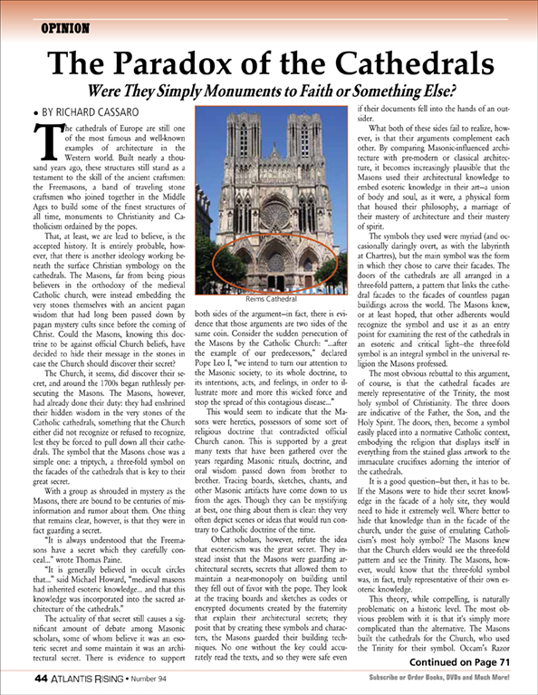 Posted on March 4, 2020April 1, 2020 by AReditorialDept The Paradox of the Cathedrals The Paradox of the Cathedrals Were They Simply Monuments to Faith or Something Else? By Richard Cassaro The cathedrals… You must be logged in to view this content. Post navigationPrevious post: Solar CatastropheNext post: The Making of the Piri Reis Map