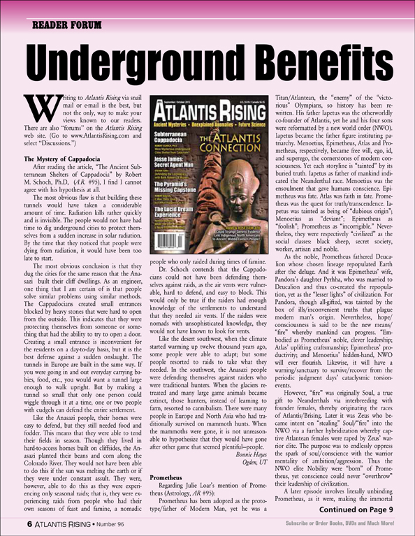 Posted on March 4, 2020October 2, 2020 by AReditorialDept Underground Benefits Writing to Atlantis Rising via snail mail or e-mail is the best, but not the only, way to make your… You must be logged in to view this content. Post navigationPrevious post: When the Date Keepers Twist the TimelinesNext post: Virginia Steen-McIntyre and the Hueyatlaco Saga