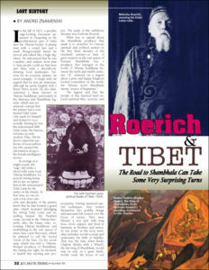 According to author Andrei Znamenski (Red Shambhala: Magic, Prophecy, and Geopolitics in the Heart of Asia, 2011) writing in Atlantis Rising Magazine #89 (September/October, 2011), the Panchen’s narrow escape led to a prophecy that “the runaway abbot would come back to Tibet as the king of Shambhala and punish evildoers.” Later that year Russian/American Painter  and theosophist Nicholas Roerich, supported by a grant from U.S. secretary of agriculture Henry Wallace, appeared in the region, and some Tibetans would come to believe that he, Roerich, might be a reincarnation of the Dalai Lama, sent to establish a great Buddhist theocracy in the heart of Asia. Roerich, it was learned later, did indeed have a plan to remove the Dalai Lama and establish the Panchen Lama as leader of Tibet.