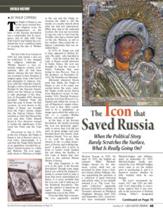 After a rainstorm with thousands of umbrellas raised, the sun appeared, quickly drying everything, but, then, said witnesses, it became an opaque spinning disc, casting multi-colored rays across the landscape. It was seen to careen toward the earth before zigzagging back to its normal position. The phenomenon was observed miles away. Primitive but authentic black-andwhite film shows the crowd’s astonishment at the spectacle. Yet, as strange as the Fatima story may seem, even stranger may be the Russian connection.