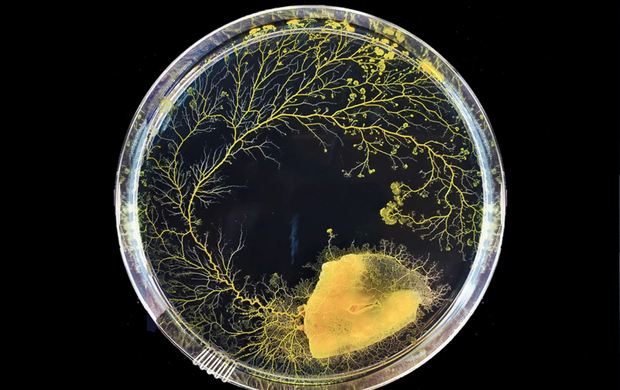 Studies in brainless slime molds reveal that they use physical cues to decide where to grow