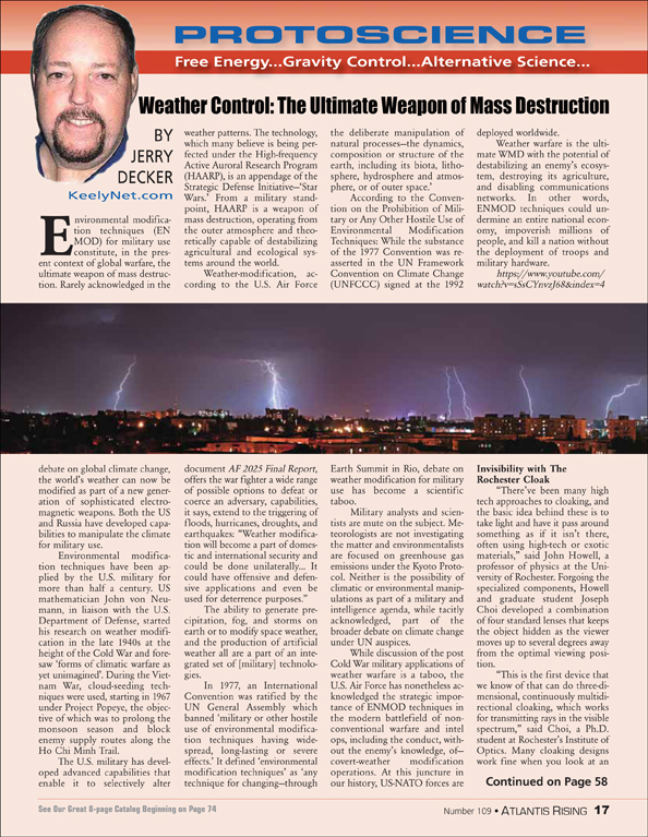Environmental modification techniques (EN MOD) for military use constitute, in the present context of global warfare, the ultimate weapon of…