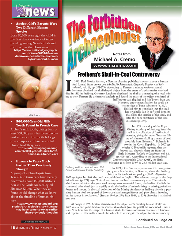 BY MICHAEL E. TYMN - THE FORBIDDEN ARCHAEOLOGIST FREIBERG‘S SKULL-IN-COAL CONTROVERSY