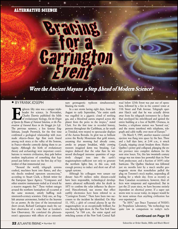 - BRACING FOR A CARRINGTON EVENT Frank Joseph: The Foresight of the Mayans Versus Modern Research