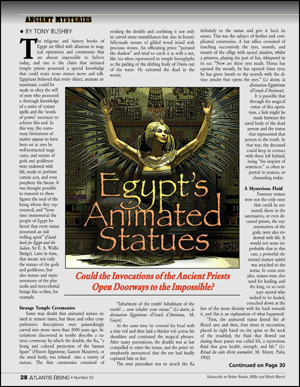 - THE ANIMATED STATUES OF EGYPT Tony Bushby: Did Ancient Priests Cross the Threshold of the Impossible?