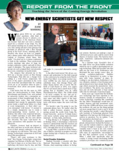 And, LENR proponents say, the Fleischmann and Pons saga is now fading as younger researchers enter the field with no memory of 1989. Perhaps that will finally be what lets LENR emerge from the pair’s shadow.“If there is a nuclear anomaly that occurs,” says Messinger, “my hope is that the wider physics community is ready to listen.”
